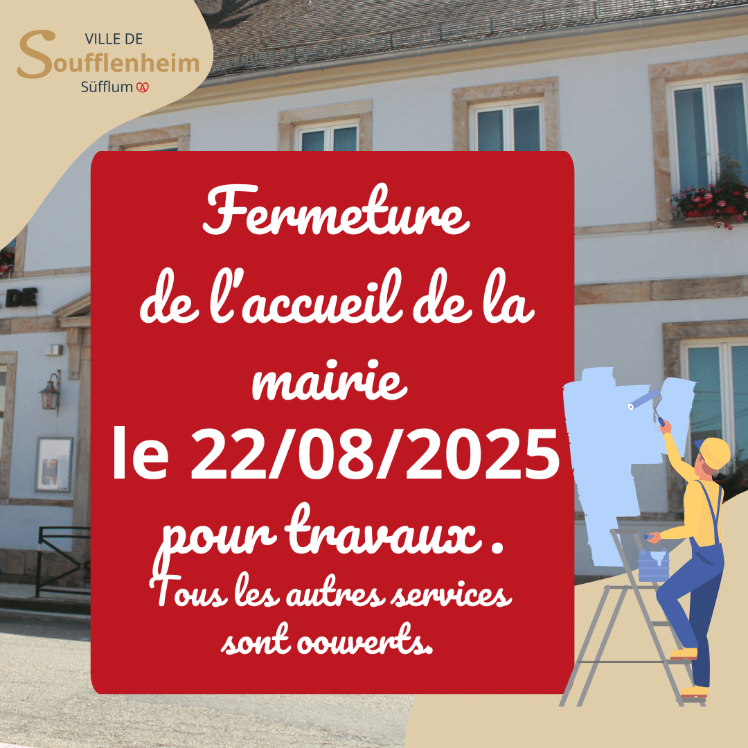 📅 Vendredi 22 août, l’accueil de la mairie sera exceptionnellement fermé en raison de travaux.