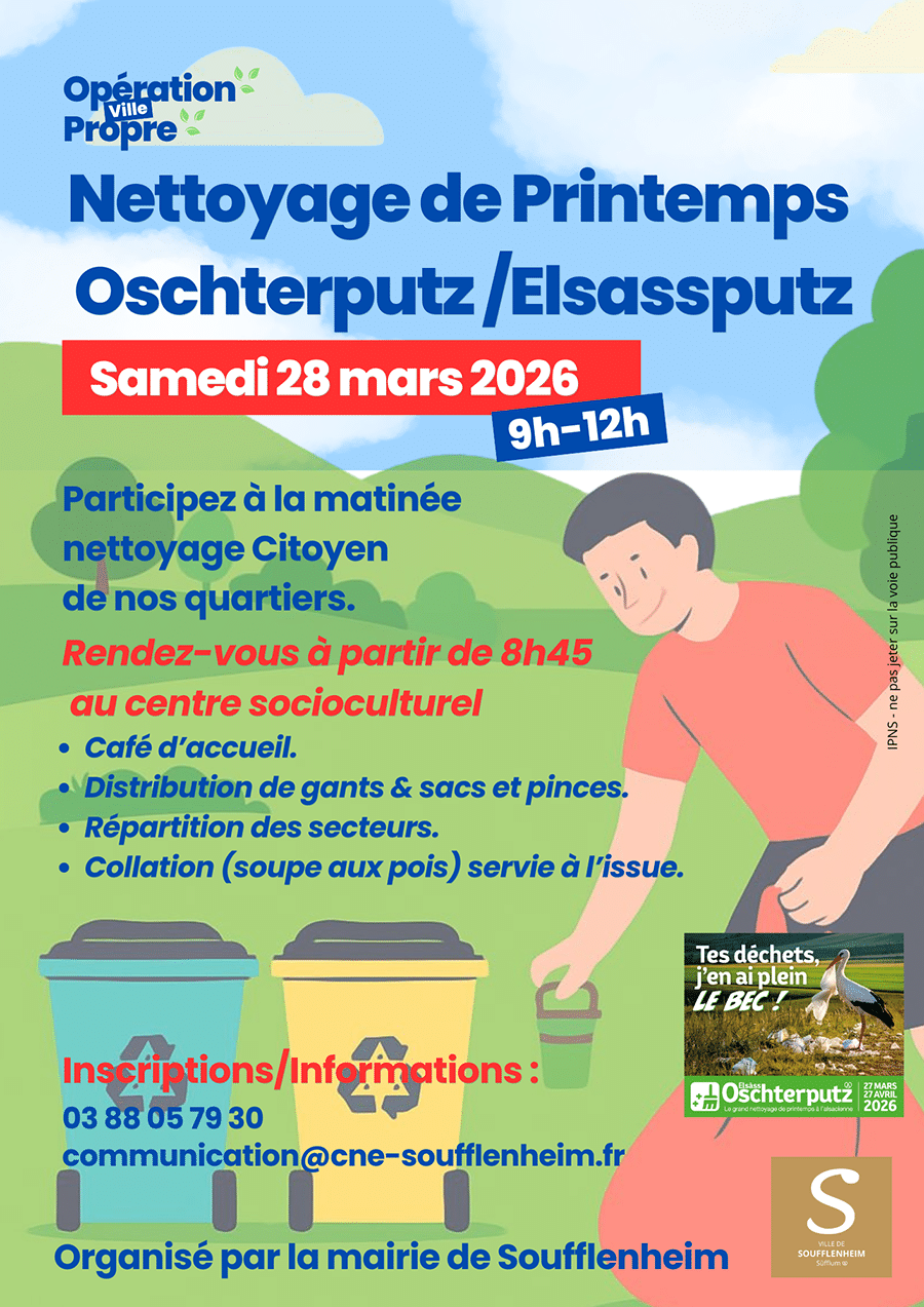 La Ville de Soufflenheim vous invite à participer à la traditionnelle opération de nettoyage de printemps 🌍✨